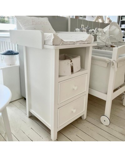 La table à langer Valentine de la Maison Baudou, allie fonctionnalité et élégance avec ses moulures en torsade.